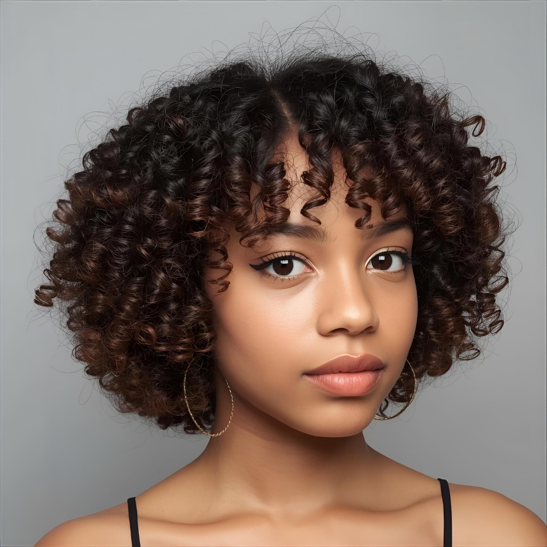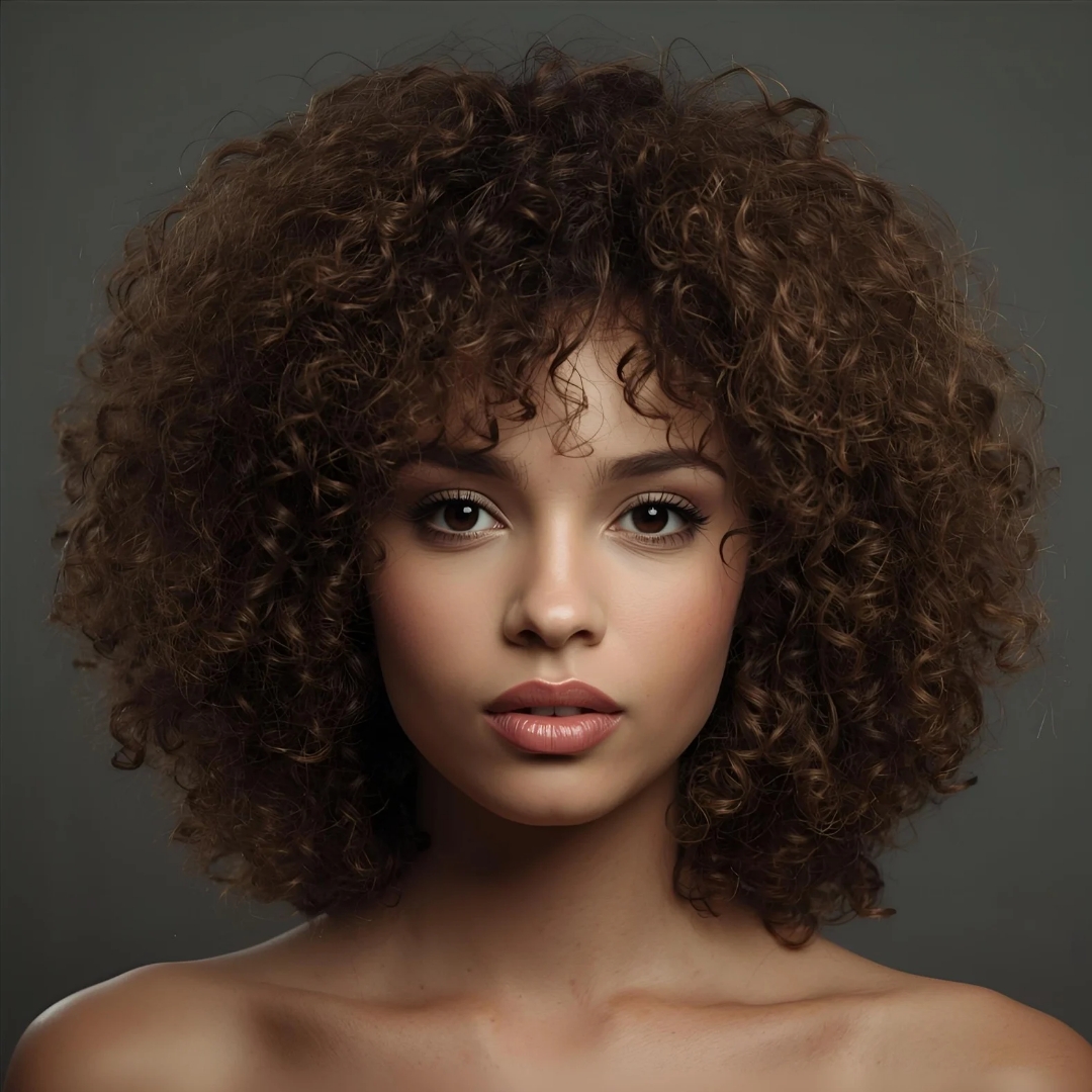 Cabelo cacheado arredondado com franja 3A, 3B