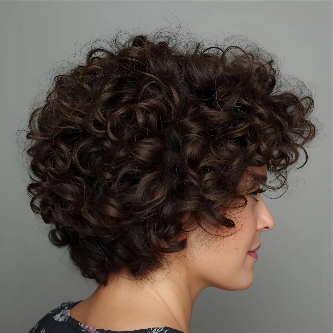 Cabelo cacheado curto arredondado: mais volume